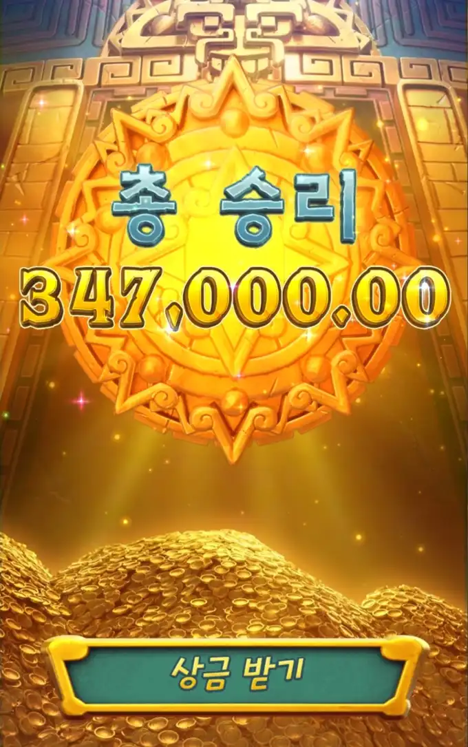 아즈텍3 플레이 장면 중 핵심 당첨 구간을 보여주는 이미지로, 당첨금 347,000.00 정보가 같이 보입니다.