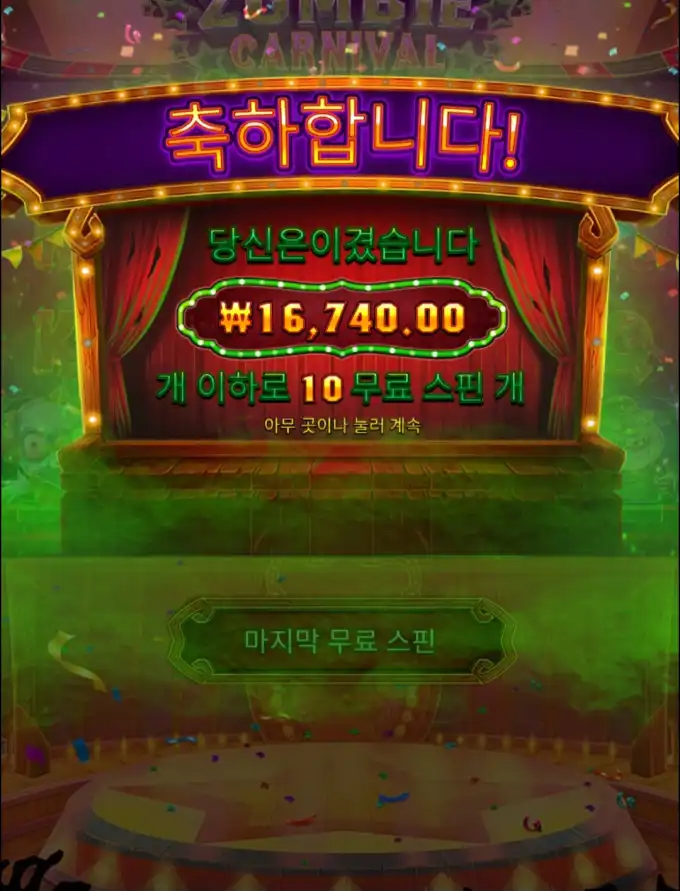 이런 건 말 길게 붙이는 것보다 장면 하나가 더 빠르긴 하죠. Zombie Carnival 쪽은 소액 들어가서 16740.00 나온 장면으로 읽히고, 배당도 배당 꽤 나온 편 쪽으로 보이네요.